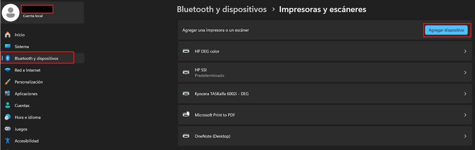2. Ir a “Configuración”, seleccionar “Blueetooth y dispositivos” y luego, “Agregar dispositivo”.